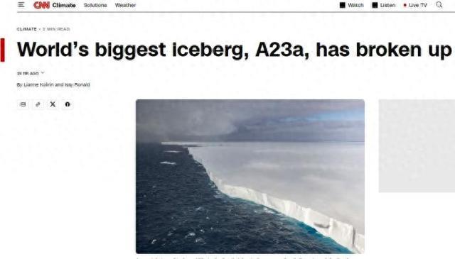 据报道,A23a冰山此前重近一万亿吨,面积3672平方公里,自1980年代以来,A23a多次获得“当前最大冰山”的称号。