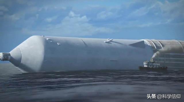 如此巨大的火箭是没有办法在陆地上发射的,因为如此巨大的喷口一启动,发射台就会被烧化,而且引发的振动和噪音也都太大了。没关系,陆地上发射不了,就到海里面去组装和发射。对于火箭而言,在海里点火是完全没有问题的,因为火箭都是自带氧化剂的,不会因为没有空气就无法点火。而且在海里组装和发射火箭要比在陆地上方便多了。因为在海面上组装可以直接让火箭“躺着”操作。组装完成之后,躺着的火箭怎么站起来呢?非常简单。