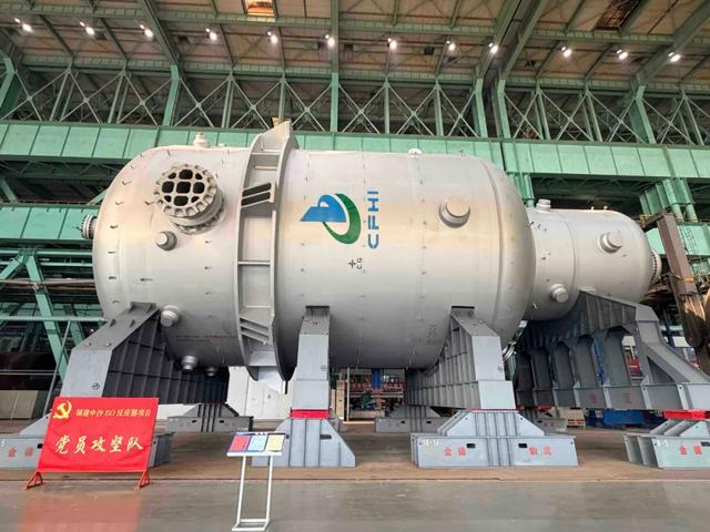 12月10日,由中国一重承制的2台中沙古雷乙烯项目EO/EG装置EO(环氧乙烷)反应器,在大连核电石化装备制造基地启航发运。