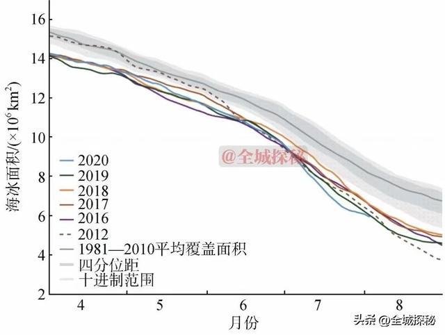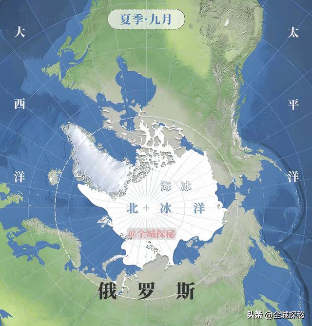 到了夏季,由于北半球温度上升,冰层面积就会大幅缩减,面积下降至750-800万平方公里,再加上近些年气候变暖影响,北冰洋的冰层也会大量分离;