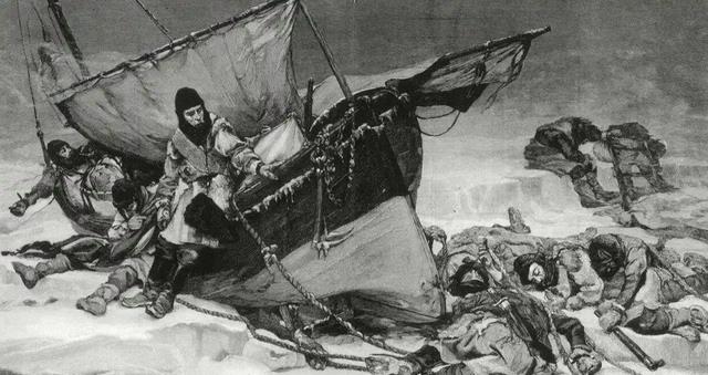 1848年,富兰克林探险队在北极失踪后,无数搜救队前往北极寻找,1850年,搜救队第一次在德文岛上发现了探险队的线索——一块印有“恐怖号”的帆布、700个空的铅制肉罐头,还有博物学家的耙子,以及船员们的衣服、铁器等物品。