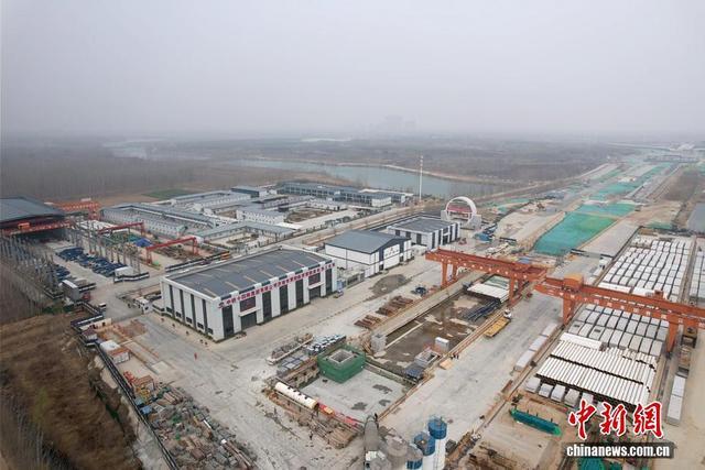 中新社发 肖雨 摄 3月17日,山东济南,世界最大水下盾构隧道——济南黄岗路黄河隧道顺利实现双层贯通。图为航拍项目施工现场。随着上层车道板施工的全面完成,项目将全面推进下层车道铺装层及上层剩余防撞侧石等施工,全力冲刺通车目标。(无人机照片)