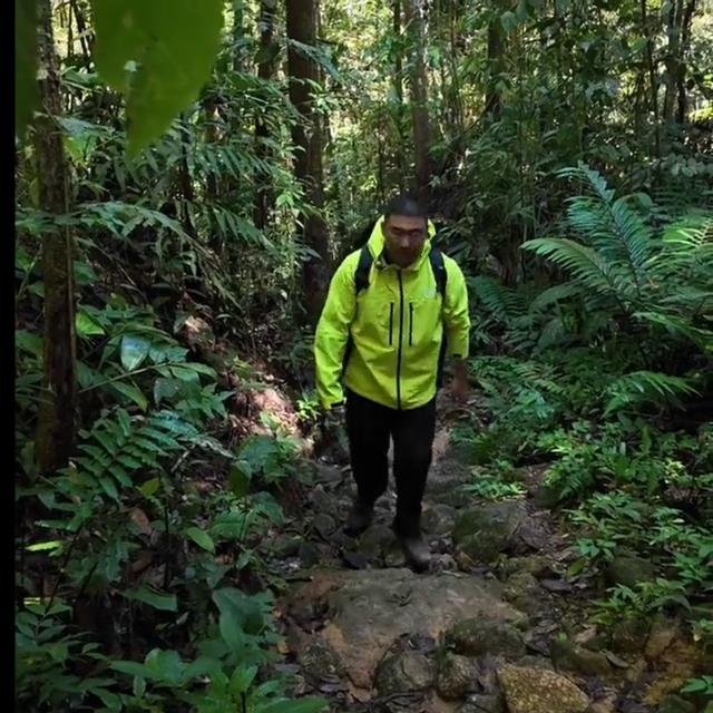 现在要继续出发,因为向导跟我说去到海拔更低的一个山上可以找到另外一个品种的大王花。这里植物丛生,衣服的保护会很重要。我专门穿了这件北面远山防水硬壳冲锋衣,它的七五d repstop抗撕裂面料在这雨林里穿梭非常抗磨,而且混纺了driv and 三l防水面料,防雨的同时还保证了湿气的透肤。腋下开口设计可以快速透气,收纳方便,小小的一个就可以塞入包里。