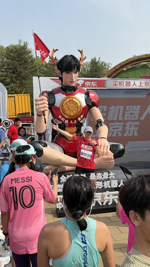 全球首个最高、最大的6米超仿真人形机器人亮相亦庄半马,跑友争相合影成打卡地标
