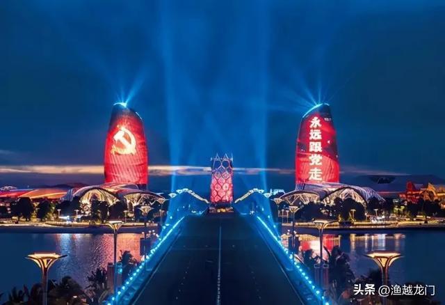 - 五彩灯光点亮整座岛屿,国际会议中心宛如发光花瓣,“海花岛”名字由来一目了然