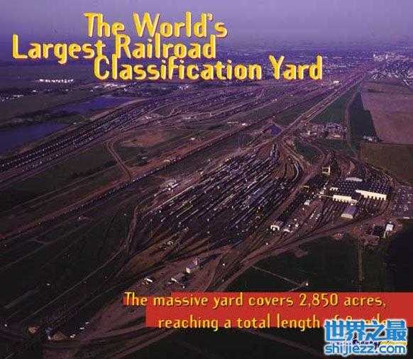 这是Union Pacific Railroad’s Bailey Yard in North Platte, Nebraska,114条轨道,日均一万车皮,面积相当于2,800个足球场。