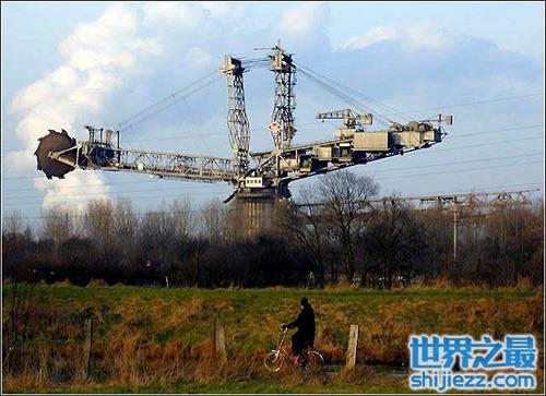 这是世界上最大的挖掘机,它有95米高,215米长,重量达到了4.5万吨,堪称世界顶级挖土机 ,它由德国krupp公司制造, 正在去往目的地的途中(一个正在挖掘中的煤矿)。用这种方式移动这个机器的费用要比在煤矿所在地重新组装它便宜。规格:此挖土机高311英寸,长705英寸,重45000吨,制造费用为1000000000美元,设计制造时间长达五年,需要有五人进行操作,铲斗机轮的直径为70多英尺,共有20个铲斗,每个铲斗可以承受530多立方英尺(泥土等),一个6英尺高的人可以站在铲斗内,挖土机依靠12个用于行进的轮状物前进(每个轮状物宽12英尺 高8 长46)八个在前,四个在后,挖土机的最快速度为三小时一英里。