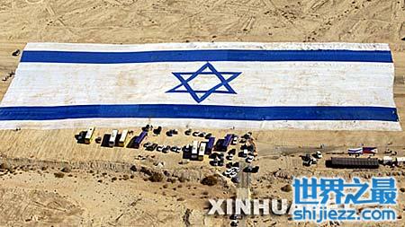 一面相当于两个足球场大小的巨型以色列国旗25日在死海海滩上摊开。以色列旅游部说,这面国旗打破了世界最大国旗纪录。