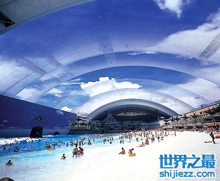 在日本将他变成了可能,见上图以及下图-这是“世界最大的室内海滩公园”,这个室内海滩公园可容纳将近10000名游客,有趣的是还有火山,在晚上每隔15分钟喷发一次,当然这是假的,灯光效果而已。如果天气好还能晒个太阳浴,这个享受!跟真的海浪、沙滩是没有区别的。如果你是冲浪爱好者,在这里练习冲浪非常理想,鲨鱼也不会打扰你。