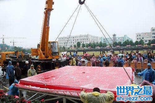 2008年10月26日下午,四川省南溪县豆腐干食品文化节现场,一块长4.21米、宽4.2米、高9.5厘米左右,重达1.8吨左右的巨型豆腐干特别引人注目,它将于26日晚间揭开红盖头,申报世界吉尼斯纪录。