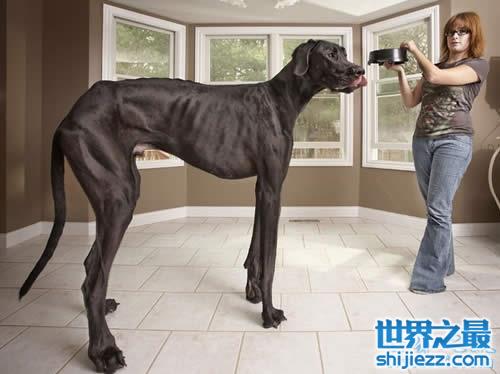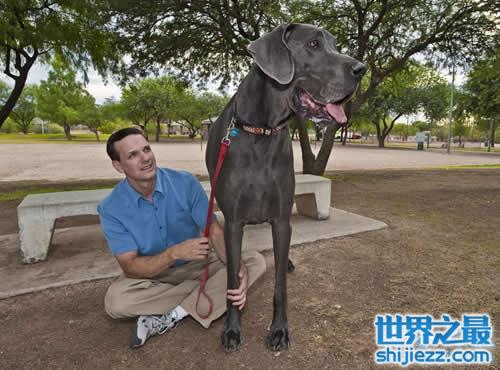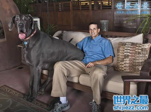 一般的狗也就50厘米高,20公斤左右,不过对于“大乔治”来说,他已经是狗届世界第一了。来自美国亚利桑那州的“大乔治”是一只大丹狗,从脚趾到肩部,而大丹狗的平均体重仅为70公斤。“大乔治”一个月要吃掉81.6公斤重食物。由于庞大的体型,主人戴夫.纳赛尔不得不为它定做了一张专用大床垫。2010年,经《吉尼斯世界纪录大全》认证,“大乔治”成为世界上最大的狗。