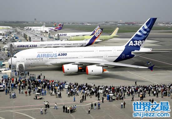空客A380翼展79.8米,长73米,高24.1米。机舱内有足够的空间设立卧舱、商务中心、健身房、医疗中心、图书馆、餐厅及酒吧,令乘客恍如置身豪华游轮。与当今最大客机波音747客机相比,空客A380的面积多出40%以上。此外,这种飞机的货机型号有效载荷为150吨,运输货位体积为1132立方米。A380于2005年4月27日首飞成功,并于同年的11月11日,首次跨洲试飞抵达亚洲的新加坡。现时全球有十多家航空公司订购A380。