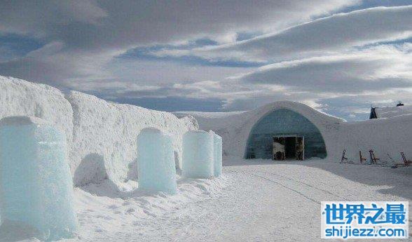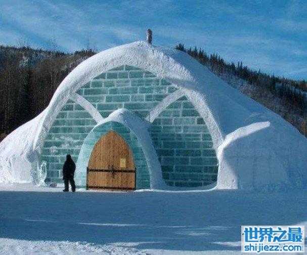 位于瑞典尤卡斯耶尔维的冰旅馆为世界上最大的冰建筑物,室内总面积为5000平方米,每晚可接待150位来宾。在过去的5年中,该宾馆每年12月份修缮一次,面积逐年增加。