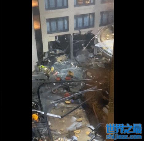 酒店位于一个综合休闲区,内设有写字楼、博物馆和餐厅等。事故导致酒店、咖啡馆、地下停车场和一家巧克力店受损,2人被玻璃碎片击伤,已被送往医院。