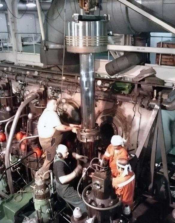 其次,由于其庞大的体型,96C柴油发动机所使用的涡轮也是专门定制的,进风口可以轻松通过两个成年人。而联通他们的曲轴和安装槽也同样令人惊叹,在它粗壮的管道旁边,工人显得异常矮小。