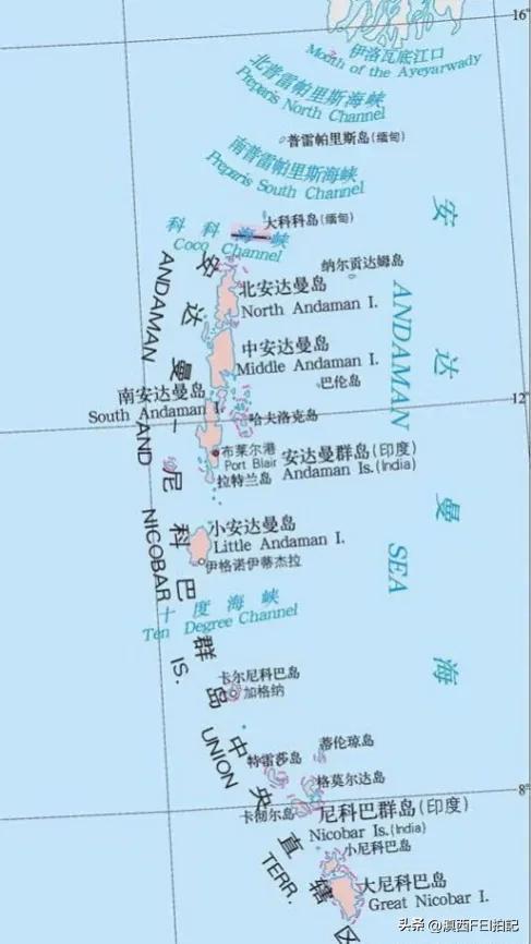 7、印度—中安达曼岛,面积1761平方公里 ;安达曼群岛临近缅甸,是通往“黄金水道”马六甲海峡的必经之地,是扼守这一国际航道的咽喉。