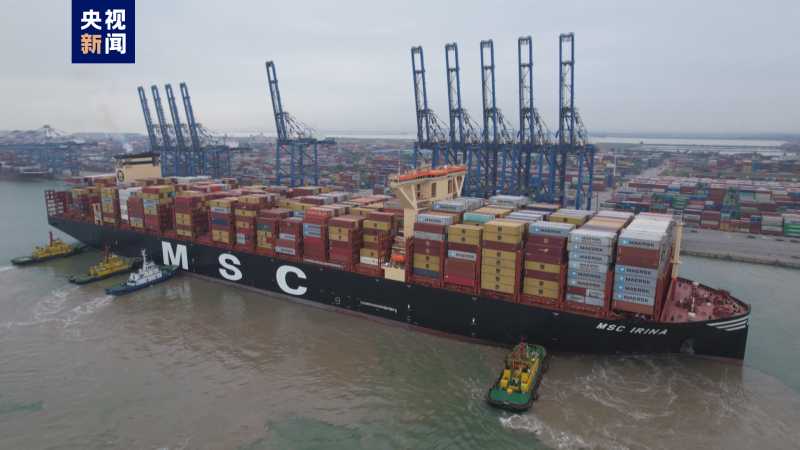 全球最大集装箱船“地中海伊琳娜”号首航广州南沙港