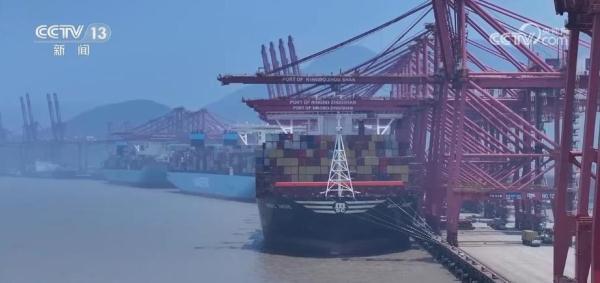 央视网消息:近日,我国自主研制的超大型集装箱船“地中海米歇尔卡佩里尼”轮首航。该轮首站停靠宁波舟山港穿山港区集装箱码头,从此开启其航运之旅。这已是穿山港区78天内迎来的第3艘超大型集装箱货轮首航。