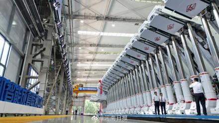 世界最高液压支架在郑州下线 该套设备将应用于陕煤曹家滩矿业超大采高工作面,工作面长299.5米,走向长度6000米,预计投入使用后,年生产原煤有望突破2000 万吨。(记者栾姗 胡舒彤 聂冬晗)