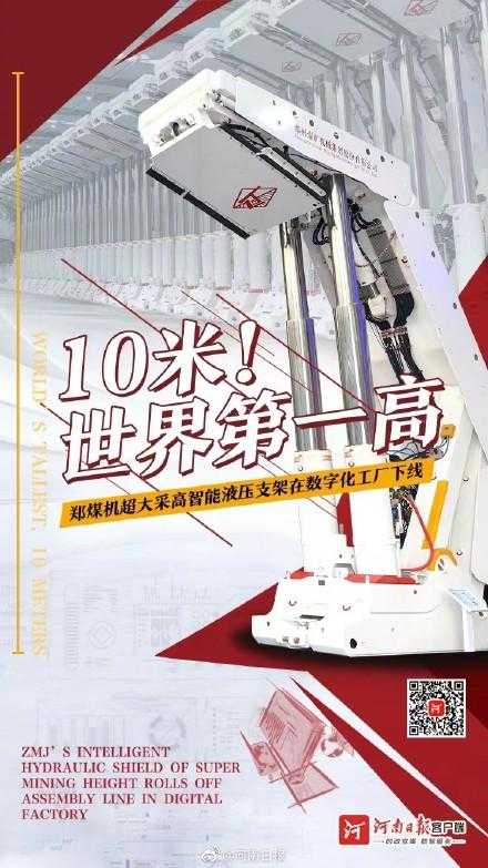 6月13日,记者从郑煤机集团获悉,世界最高10米液压支架完成首批交付。从之前8.8米的记录到这次的10米,不仅仅是支护高度上1.2米的提升,更是基础材料、加工设备、技术工艺、认知理念等全方位的提升。