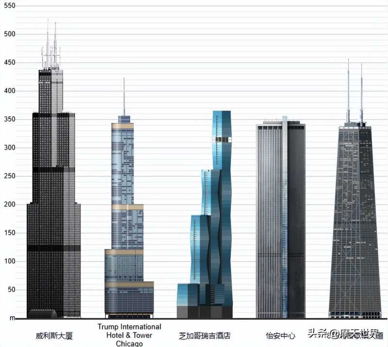芝加哥是美国第3大城市,国际金融中心之一。目前已建成六座300米以上摩天大楼,其中最高的是威利斯大厦(主体高442.1米,带天线527米),1974年建成,占据全球第一高楼头衔近25年,直到1998年才被取代。