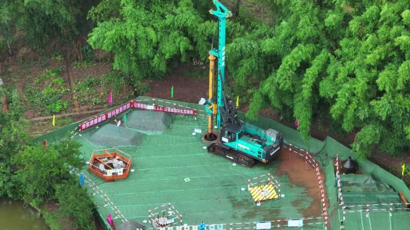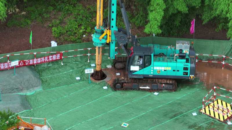 “旋挖钻机准备,开挖!”工作负责人一声令下,旋挖钻头开始向下掘进。建设现场,各类施工机械轰鸣声响起,金上—湖北特高压工程四川段线路的首基铁塔基础试点施工如火如荼地进行着。