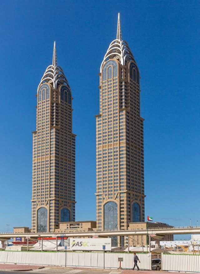 皇家钟楼酒店是由七座政府摩天大楼组成的建筑群的一部分,共有127层。钟楼还有200万盏灯,每天闪烁五次。