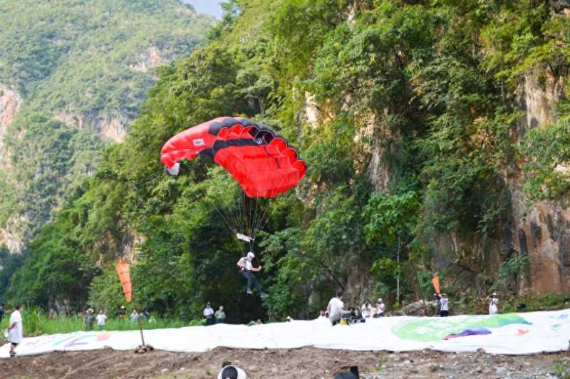 新华社贵阳9月6日电(记者骆飞、吴思)6日上午,极限运动员们相继从北盘江大桥上飞跃而下,拉开了在贵州省六盘水市举行的2023国际高桥极限运动邀请赛世界第一高桥站低空跳伞角逐的序幕。