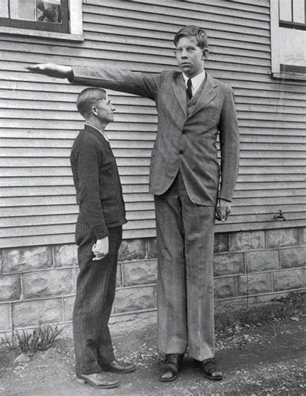 美国人罗伯特·瓦德洛 (Robert Wadlow) 是有史以来最高的人,他的最高身高为2.72米,比篮球运动员姚明要高46厘米。1918年2月22日,罗伯特出生于美国伊利诺伊州奥尔顿,从小就达到了前所未有的高度。在他六岁的时候,他已经有5英尺7英寸高了,到第二年年底,他的身高已经超过了父亲。罗伯特在16岁时跨过了8英尺的大关,成为有史以来最高的青少年。在他21岁生日后不久,身高8英尺9英寸的他被公认为有史以来最高的人。他最后一次测量是在1940年6月27日,这位举止温和的美国人的身高达到了惊人的2.72米。