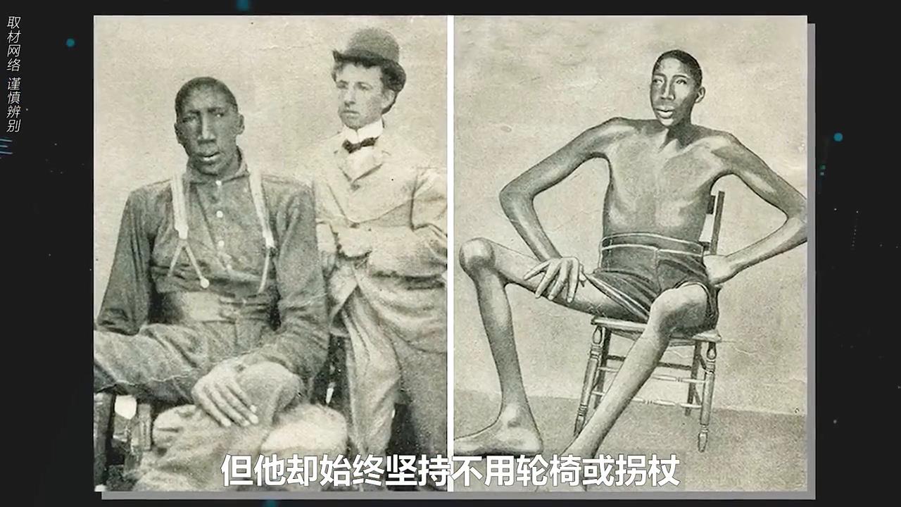 从13岁开始约翰的身高便以惊人的速度增长,到了19岁的时候他已经长到2.54米,随着他的身高不断增长四肢也变得越发细长。尽管身体的缺陷让他走路都变得困难,但他却始终坚持不用轮椅或拐杖,反而出人意料地制作了一辆山羊手推车,他坐在手推车上看起来就像一个"活骷髅"的黑巨人。
