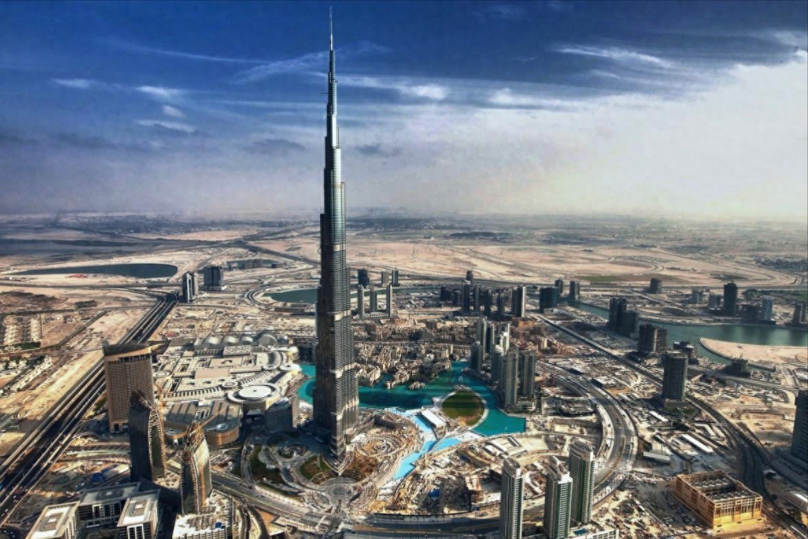 哈利法塔是目前世界上最高的建筑,高度达828米。
