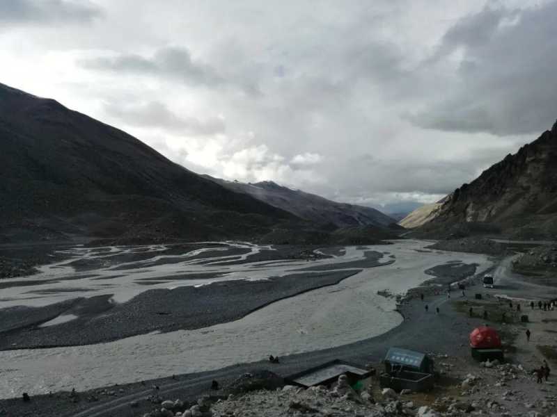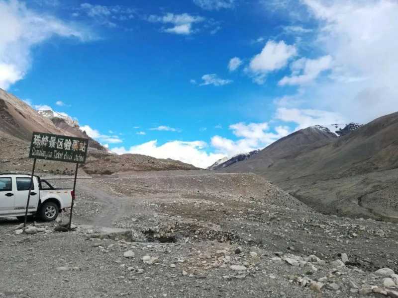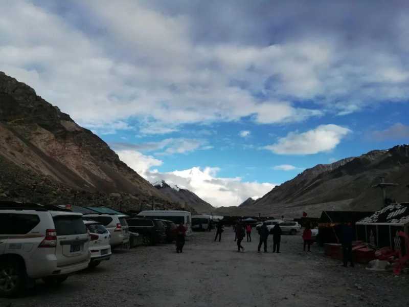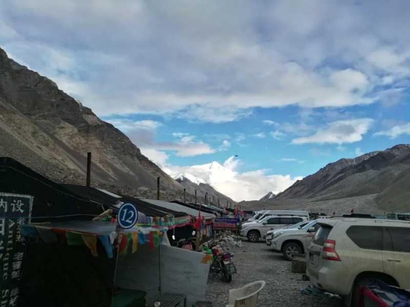 所谓大本营,其实不过是一条两山之间的乱石沟。整平了露出一条不算太宽的土路,路两旁搭满了帐篷,来住宿的车辆就直接停在帐篷门口。这些帐篷只在夏季会有,到了冬季,就会全部撤走,来的人就只能住在远处的绒布寺了。