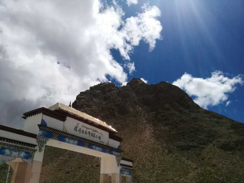 过了新定日(我对这座县城毫无印象,因为根本没有进城)不远,就是珠峰公园的大门。这个大门颇为简陋,一座牌坊,上书汉文“珠穆朗玛峰国家公园”和一行弯弯曲曲的藏文,但就“珠穆朗玛”这几个字,立于苍莽群山之间,也足以让人神往。