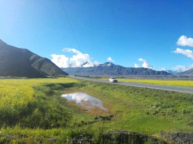 高原上气候变幻不定,今天出发,天气竟然很好,车辆不多,也大都是前往珠峰大本营的游客。由于到了边境地区,身份证和边防证要随时准备,以便查验。沿途风景观感不错,只厕所不敢恭维。在雅鲁藏布江流域,油菜花至七月底才刚刚变黄,远处稍高一点的山脉,终年寸草不生。