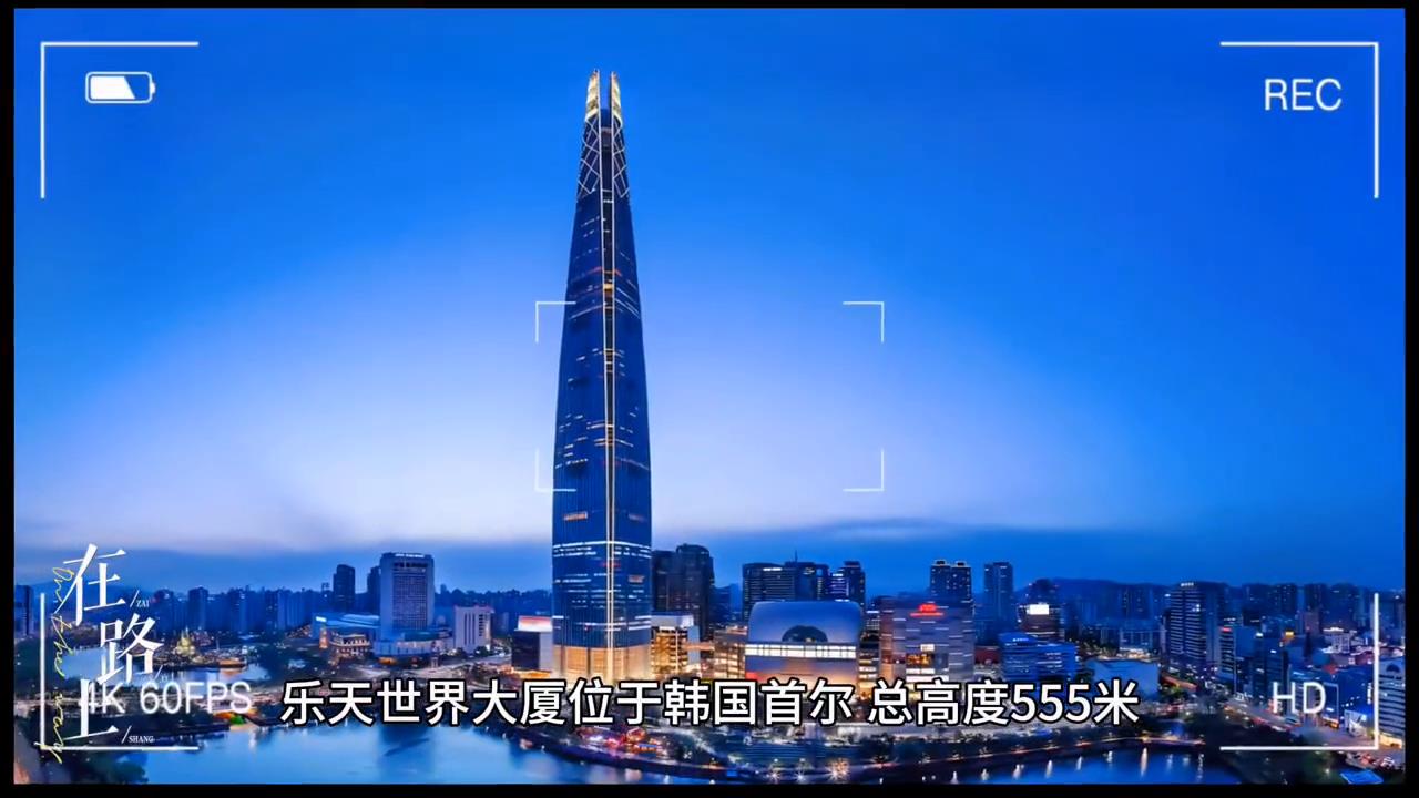 ·世界第七高楼:乐天世界大厦,位于韩国首尔,总高度555米,共123层。