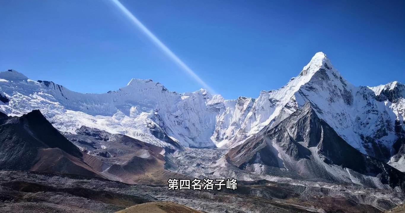 ·第四名洛子峰,海拔8516米,是世界第四高峰,位于珠穆朗玛峰和马卡鲁峰之间。这座山峰的攀登难度较高,但景色同样壮丽。
