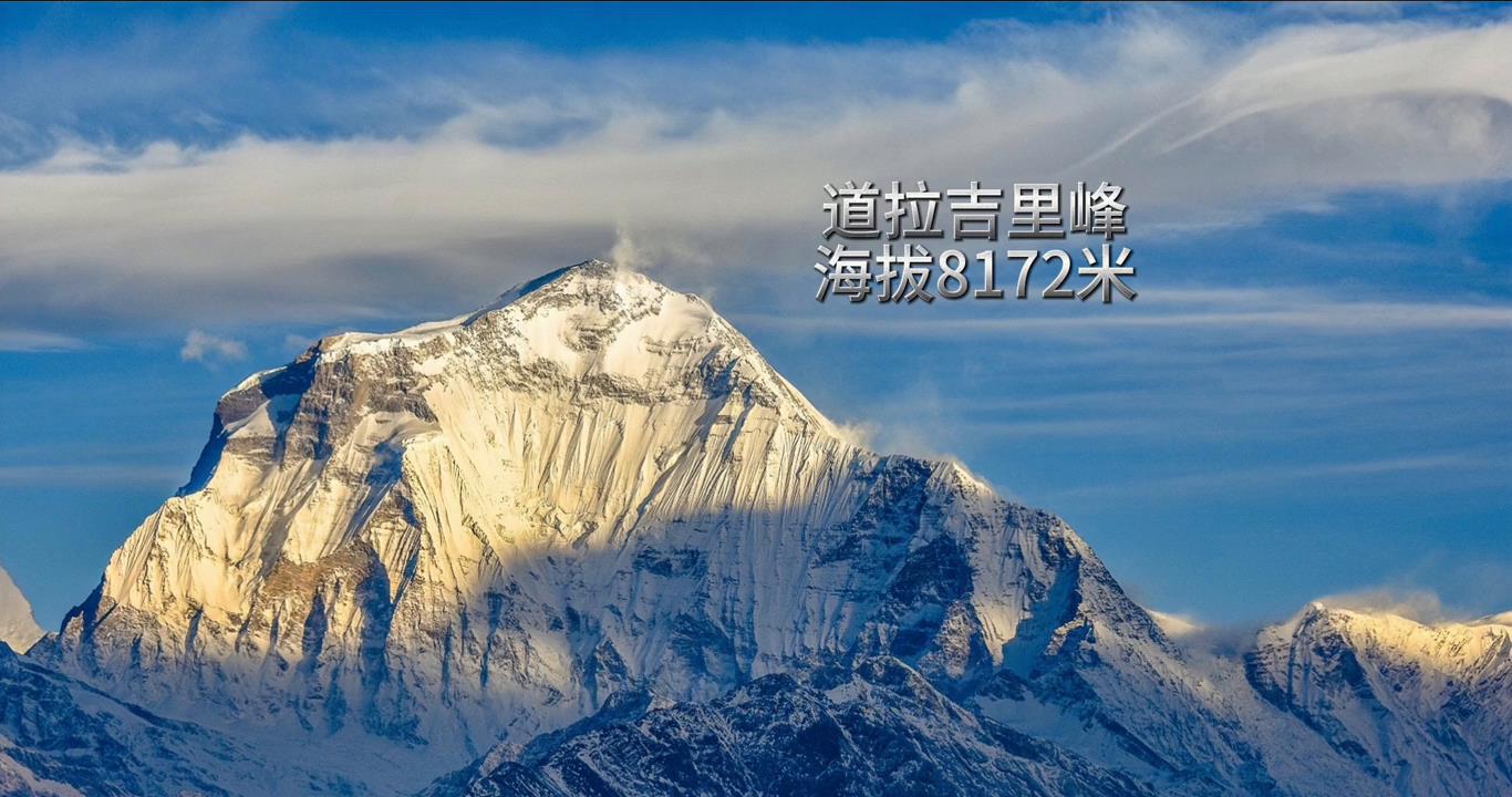 ·第七名道拉几里峰,海拔8172米,是世界第七高峰,位于尼泊尔境内。这座山峰同样攀登难度较高,景色非常壮丽。道拉几里峰周围还有许多美丽的村庄和风景名胜区,吸引着游客前来一睹其风采。