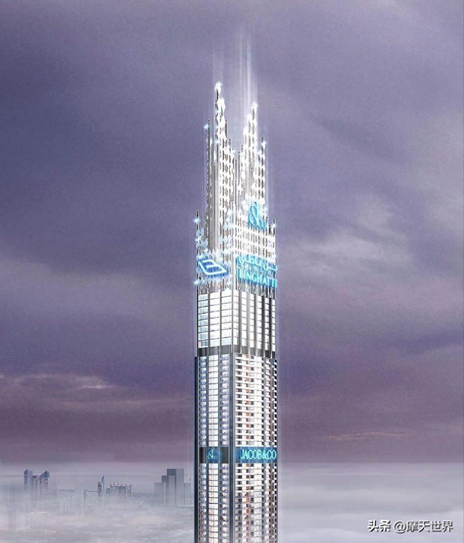 项目名称:Burj Binghatti Jacob & Co Residences坐标:迪拜市中心建筑高度:595米楼层:105项目开发:Binghatti+Jacob & Co开工:2022年计划完成:2026年