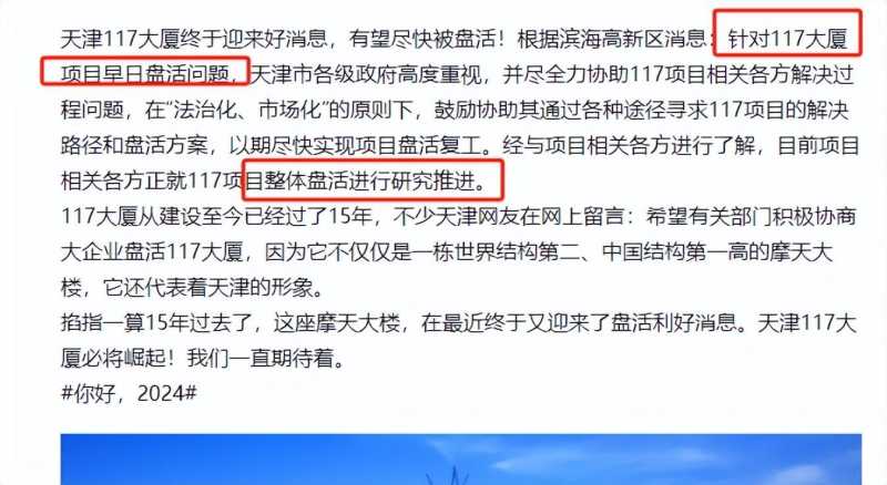 那今天雾霾肯定很严重了,就不能开窗通风了!除此之外,它还成了一种辨别方向的地标性建筑物!如今喜讯传来!天津市各级政府高度重视,鼓励协助其通过各种途径,寻求117项目的解决路径和盘活方案!