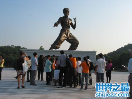 未完成的泥塑李小龙像块挨着工场的顶棚,著名雕塑家曹崇恩教授坐在两层的铁架上,雕刻“李小龙”的面部细节。“人像和底座加起来有18米高,模型完工后进行铜铸,将是世界上最高的李小龙铜像。”昨日,曹崇恩说,今年11月李小龙纪念馆新馆有望建成开放,铜像会安装在纪念馆内供游客参观。