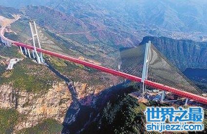 北盘江大桥,位于中国的贵州省。全长1341米,横跨号称“世界大峡谷”的北盘江峡谷。超越以往所有桥梁的高度,第一个突破桥梁高度500米的障碍,并首次成为拥有“世界最高桥梁头衔的斜拉桥。今天,世界顶尖的桥梁正在华夏大地上崛起,无数的不可能正在变为可能。中国的实力正在不同的方面不断加强。