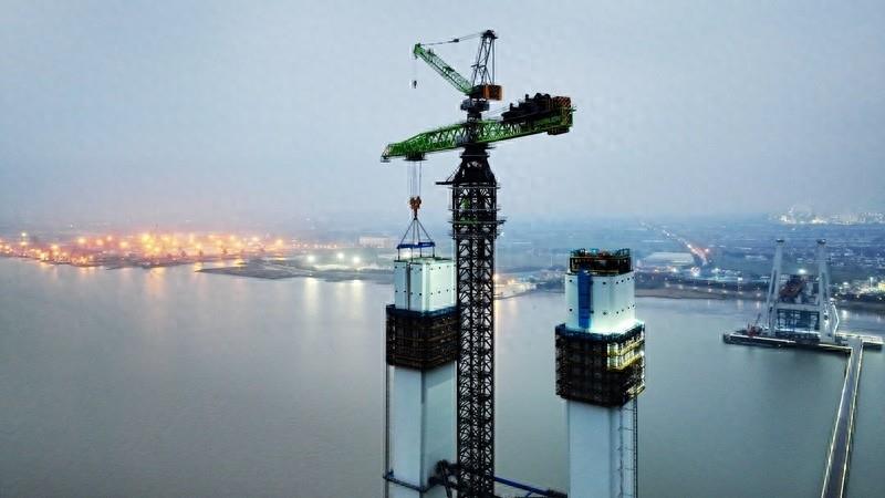 央广网苏州12月11日消息(记者顾炀威)12月10日,在中交二航局张靖皋长江大桥施工现场,全球首台万吨米级塔吊W12000—450塔机将重达260吨钢塔T15节段缓缓从地面吊起,索塔成功攀升至156米的新高度,标志着世界最高悬索桥索塔吊装进度已完成过半。