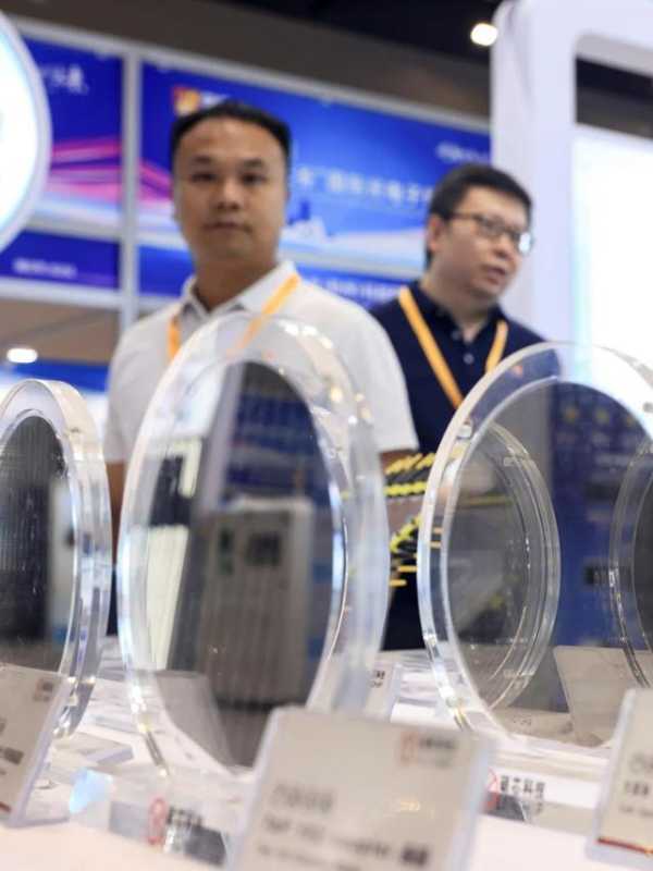 展会上的各种晶圆。记者胡冬冬 摄