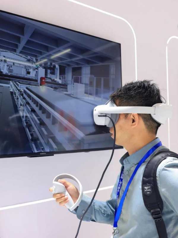观众体验VR操作激光加工装备。记者胡冬冬 摄