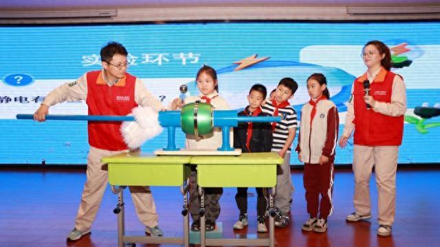 当天,国网上海松江供电公司依托国网“电力爱心教室”公益项目,组织明灯(松江)共产党员服务队走进上海市三新学校东校区,为近300名三年级同学们带来了一妙趣横生的《“电”亮科学好奇心——电的世界》科普公开课。