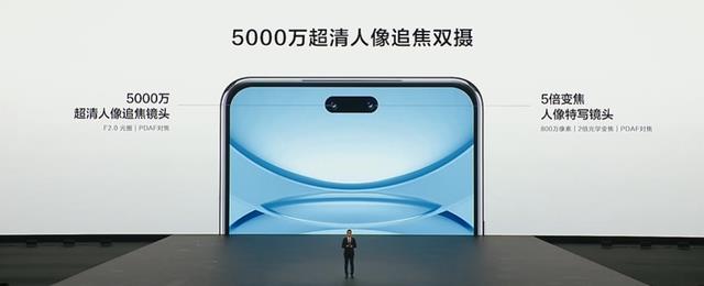 前置5000万超清人像追焦镜头和5倍变焦人像特写镜头。