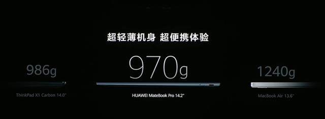 整机只有970g,再次刷新华为轻薄本设计历史。