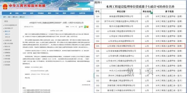 近日,水利部发布《关于水利工程建设监理单位资质准予(变更)行政许可决定的公告》,山东环保集团权属企业山东润鲁工程咨询集团有限公司获水利工程施工监理甲级资质延续许可。