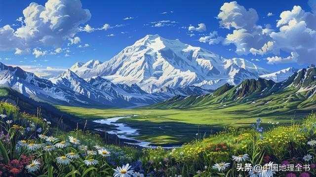 北美洲:麦金利峰,海拔6193米,位于美国阿拉斯加州中南部,是阿拉斯加山脉中段山峰,构造上属太平洋边缘山带,为一巨大的背斜褶皱花岗岩断块山,山势陡立,有南北2峰,2/3的山体终年积雪。