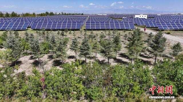 图为塔拉滩光伏产业园区一角。(无人机照片)中新社记者 马铭言 摄